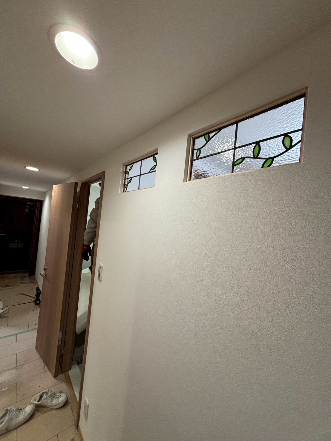 玄関の上方にガラス細工を施しました。